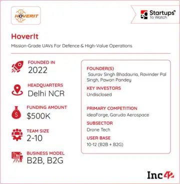 Founded in 2022 by former Kalaari Capital partner Ravinder Pal Singh, commercial pilot Saurav Singh and Kawa Tech founder Pawan Pandey, HoverIt is building indigenously designed and manufactured UAV platforms for defence and strategic enterprise use cases.