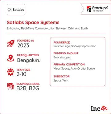 Founded in 2023 by Saisree Eega and Sooraj Gopakumar, Satlabs Space Systems is building a global data relay satellite network to enable 24×7 connectivity and real-time access to space assets. Instead of waiting for ground-station windows, satellite operators can connect to Satlabs' network to task and re-task spacecraft dynamically and access data continuously.