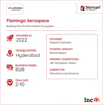 Aiming to build an indigenous aviation and aerospace ecosystem in India beyond aircraft assembly, former Mapprr founder Pappula Subhakar set up Flamingo Aerospace in 2022.