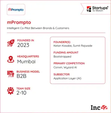 Founded in 2023 by Rediff founding team member Sumit Rajwade and Ketan Kasabe, mPrompto is building an AI-powered customer engagement platform designed to address this gap. The platform helps brands understand why customers hesitate and guides them towards informed decisions in real time.