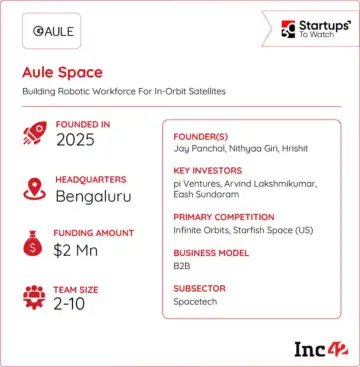 Founded in 2024 by Jay Panchal, Nithyaa Giri, and Hrishit Tambi, the startup's technology enables life extension of high-value satellites, close-range inspection of space assets and safe decommissioning of non-functional spacecraft.