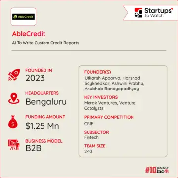 To address the credit gap in India and similar challenges in emerging economies, Utkarsh Apoorva, Harshad Saykhedkar, Ashwini Prabhu, and Anubhab Bandyopadhyay launched AbleCredit in 2023.