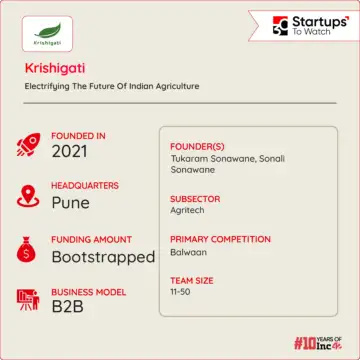 Founded in 2021 by Sonali Weljali and Tukaaram Sonawane, Krishigati is an agritech startup that offers innovative solutions for modern precision farming. The company is dedicated to improving the lives of marginal farmers by providing sustainable and value-added products and services, aiming to reduce farming expenditures by 20-60%.