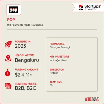 Founded in 2023 by Bhargav Errangi, POP aims to establish itself as a premier destination for payments and shopping tailored for today’s discerning users. The cornerstone of POP’s offerings is the POPclub app, a comprehensive UPI payments and shopping platform.