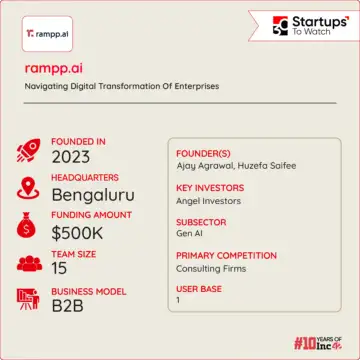Currently operating in North America and India, rampp.ai engages in a B2B model, offering the RADI Navigator platform as a SaaS solution. Going forward, the startup aims to position itself as the default transformation partner for enterprises.