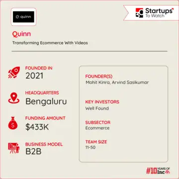 Founded by Mohit Kinra and Arvind Sasikumar in 2021, Quinn leverages video assets, such as Instagram Reels, to boost Shopify store revenue.