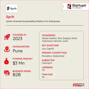 Sprih’s flagship products include an enterprise sustainability platform and a supply chain sustainability platform, both widely adopted by numerous companies. The key USP of Sprih's products lies in its holistic approach to sustainability.