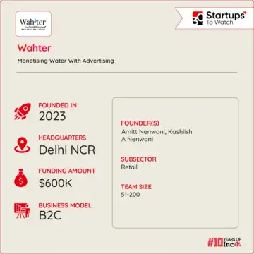 Founded in December 2023 by Amitt Nenwani and Kashiish A Nenwani, Wahter combines packaged drinking water with a unique advertising platform.