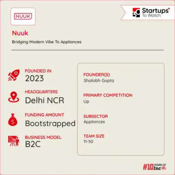 Founded in 2023 by Gazal Kalra and Shalabh Gupta, Nuuk is a Gurugram-based D2C electronics brand. Largely focussed on consumer electronics, the startup sells table fans, circulation fans, personal fans and car vacuum cleaners.