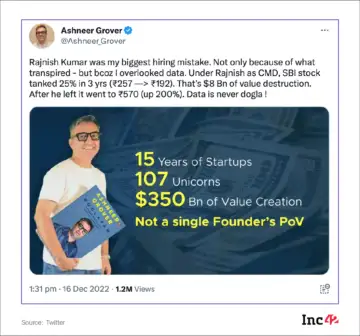 Of course, it's worth noting that Ashneer barely contributed to the unicorn status of Grofers. The company entered the unicorn club in 2021, four years after Grover's departure from the company.