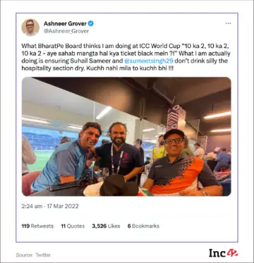 For instance, in January 2022, Ashneer Ex-CEO Suhail Sameer and General Counsel (GC) Sumeet Singh ran up huge bills during the T20 World Cup. This was just one of the many volte-face statements by the former MD in the last 16 months.