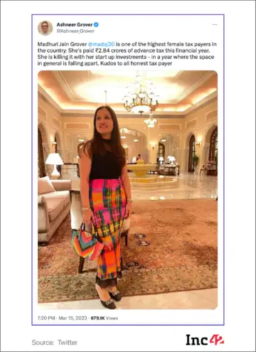 Interestingly, in March 2022, Ashneer sent media details of his and his wife's advance income tax payments. While Ashneer paid over INR 7.1 Cr in advance tax, Madhuri is said to have paid INR 1.11 Cr in advance tax. But it's not clear whether this was the full advance tax for the assessment year 2022-23, or just a portion of the tax owed to the exchequer.