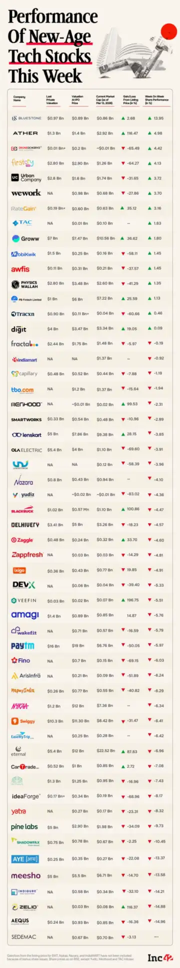 The Indian equities market continued to suffer amid the ongoing conflict in West Asia, resulting in continued selling pressure on new-age tech stocks as well this week.