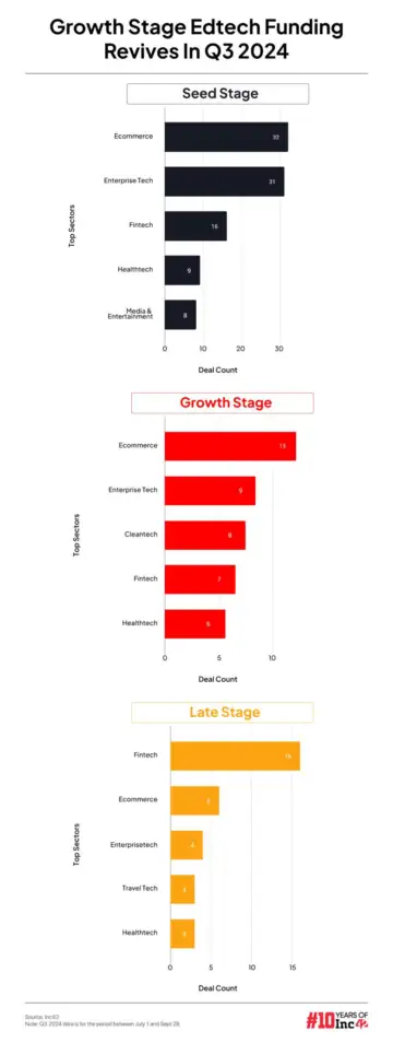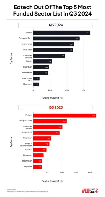 However, on a year-on-year basis, edtech funding in the third quarter of 2024 was up 357% to $224 Mn from a mere $49 Mn in Q3 2023.