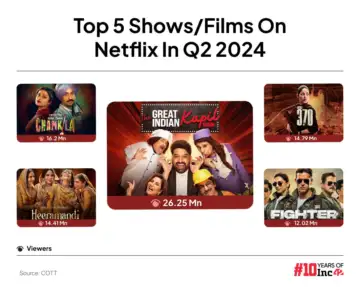 As per Netflix data, its original series Heeramandi garnered 15 Mn views and its original film Amar Singh Chamkila garnered 8.3 Mn views. Besides, licensed films such as Laapataa Ladies and Shaitaan also performed well.