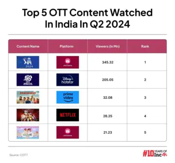 "Netflix is excelling in capturing India's affluent market, with over 13 Mn subscribers who consistently pay more than three times the average industry ARPU every month. Its success in acquiring new subscribers is fuelled by a combination of local original shows, digital premieres of blockbuster movies, and expanded telco partnerships, which have driven new additions. However, it's the platform's international content that enhances user retention," said Mihir Shah, vice president of Media Partner Asia (MPA).