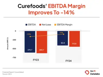 The startup narrowed its EBITDA loss to INR 82.8 Cr in FY24 from INR 275.7 Cr in FY23, resulting in a 58 percentage point improvement in its EBITDA margin to -14% from -72% in the previous fiscal year.