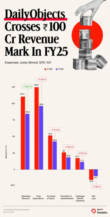 DailyObjects' total expenses during FY25 jumped almost 30% to ₹124.5 Cr as compared to ₹96.4 Cr in the previous year. Here's a breakdown of its biggest expenses: