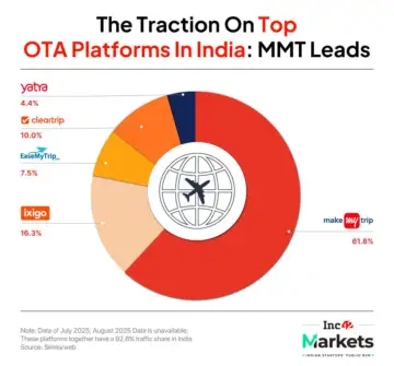 Discounts might be one reason why EMT's share of inquiries and bookings have shrunk, but it's a strategy that works. As per Similarweb data, EMT had the second-lowest monthly visits in July among the top travel OTAs, with only Yatra performing worse.