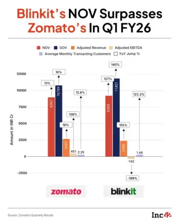 On an annual basis, while Blinkit's adjusted EBITDA margin tanked by 159% on the back of rapid expansion, on a sequential basis, margin increased by 16%, despite seasonal disruptions like monsoons and festivals.