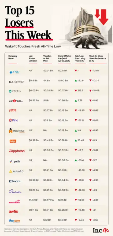 Fino Payments Bank, Yatra, and EaseMyTrip were among the other losers this week.