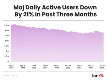 Similarly, Moj's daily active users across all apps have gone from just over 16 Mn at the beginning of September 2023 to around 13 Mn in January 2024.