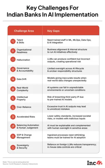 As highlighted above, national banks such as SBI and Bank of Baroda have known how essential AI is for some time, but it's the maturity of AI models and algorithms that have now created challenges. The early movers have already invested in their data foundation, services, and enabling architecture. But updating this for the modern age is another technology and talent-intensive task.