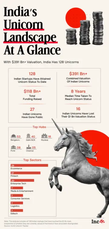 As of April 2026, India's unicorns have collectively raised over $118 Bn and command a combined valuation exceeding $391 Bn.