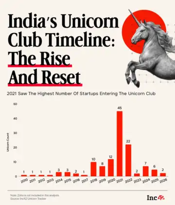 At this pace, the Indian startup ecosystem is on track to mint six unicorns this year - same as in 2025. However, this is a far cry from the funding boom of 2021, when 45 startups entered the $1 Bn+ valuation club.