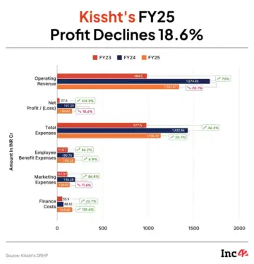 Lending tech startup Kissht's net profit declined 18.6% to INR 160.62 Cr in FY25 from 197.29 Cr in the previous fiscal year.