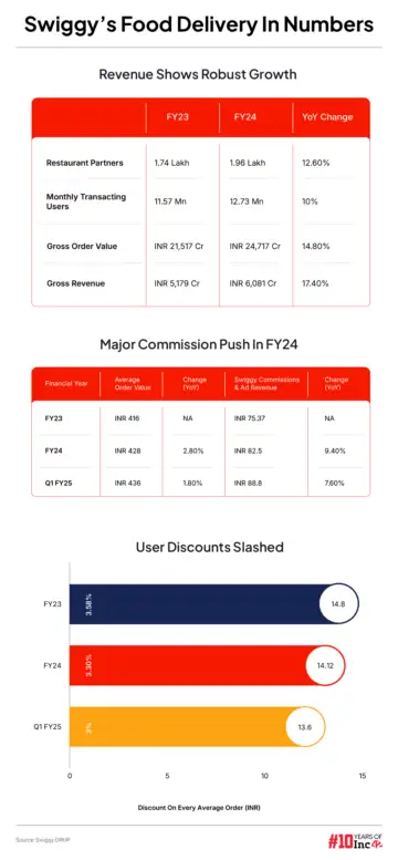 In FY24, Swiggy saw its food delivery business grow significantly as it continued to onboard restaurant partners and customers.