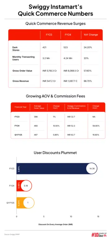 Just like on the food delivery side, Swiggy has gradually reduced its reliance on discounts for quick commerce.