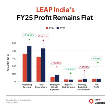 IPO-bound LEAP India's net profit remained almost flat at INR 37.5 Cr in the year ended March 2025 (FY25) as against INR 37.1 Cr in FY24 despite a strong growth in revenue.