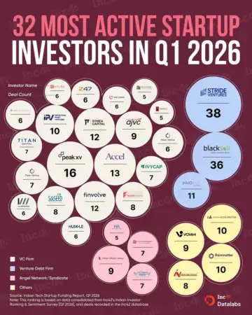 Q1 2026 saw healthy interest from VCs in India's startup ecosystem, with Stride Ventures and BlackSoil leading the pack. Here are the top investors who dominated the headlines…