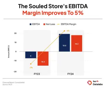 The startup reported an EBITDA profit of INR 18.6 Cr in FY24 as against an EBITDA loss of INR 8 Cr in the previous year. EBITDA margin improved to 5% from -3% in the previous year.