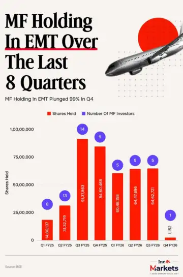 Mutual fund participation in EMT remained largely steady in FY26 before the sharp decline in Q4. However, holdings from these investors had been volatile in the previous fiscal. Here is how the trend looks: