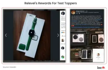On the other hand, the 'Tests' vertical was largely made up of engineers, developers and product managers. Interestingly, even though Relevel's tests were free, the company spent lavishly on rewards for some of the top-ranked candidates. The top three ranked individuals were given Apple MacBooks, iPhones, Apple Watches, iPads as prizes along with other gifts. It also spent on billboard ads in towns and cities where these top candidates came from, which is similar to how offline institutes promote their outcomes.