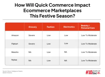 "Quick commerce platforms account for 40%-plus share in online grocery sales outside the festive season. We expect this to increase to 51%. Instant deliveries as a trend is now catching up in markets beyond metros, Tier 1 cities. However, that will take away the market share of the local kirana shops rather than the ecommerce marketplaces," Meena explained.