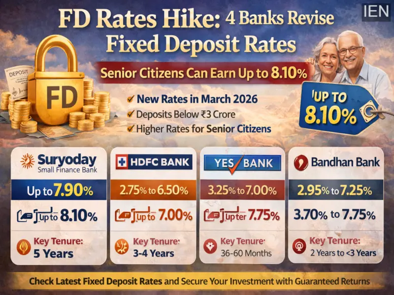 Several banks in India have revised their fixed deposit (FD) interest rates in March 2026, offering better returns for investors. The updated rates apply mainly to deposits below ₹3 crore and include higher interest benefits for senior citizens.