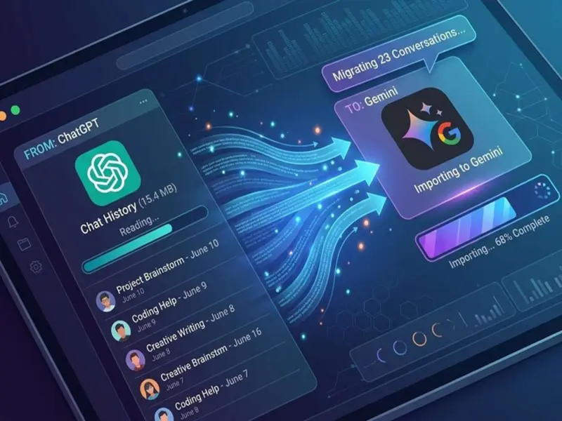 Users can upload their past chats via a ZIP file and even search through them directly within Gemini. This move aims to boost Gemini's market share in the face of ChatGPT's 900 million weekly active users.