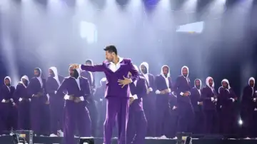 A high-voltage moment from Prabhu Dheva's live dance concertSpeaking about his upcoming movie Moonwalk, he is quick to credit director Manoj Nirmala Sreedharan, who also served as producer. "I thank him first," he says, describing him as deeply passionate and relentlessly hardworking-"more than all of us." That commitment, he believes, is what made the songs land so well. "He gave his full, blood and soul," he adds. For his role as Babooty in Moonwalk, the preparation was intense, especially across the film's songs, which took days to perfect. Working with AR Rahman, he admits, comes with a certain weight. "There's an expectation," he says. "We have to fulfil that. So I tried my best."