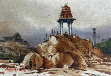 With this series I wanted to make it more detailed. However between half of the work itself it seemed to be finishing. For this medium, we don't use white paint as the paper itself is white. So, when you are doing watercolours, you have to be very careful where to leave the white, where to do the layer and that was the main thing. I used wet and wet and other such techniques for this one. The main challenge for this was that it was a smaller size and its process was quite tough.