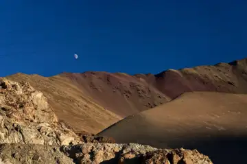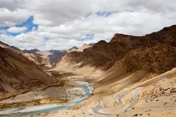 A photograph from the exhibitionLadakh, in Shah's photographs, appears less as a fixed destination and more as a sequence of transitions. Barren mountains give way to rocky stretches, which yield to snow-capped peaks, then open fields, then rivers that cut through the land like sudden interruptions. The palette shifts accordingly, from muted earth tones to sharp blues and whites, then back again. Each frame holds a fragment of that progression, a piece of a larger movement that can never be fully assembled.