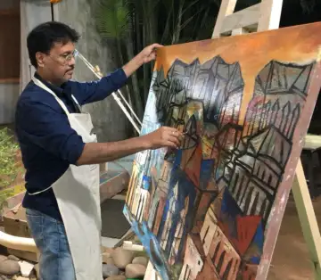 Art and the artist, Fawad Tamkanat- Fawad TamkanatI paint only one canvas a month due to their large size and the multiple layers of colours involved.His cities, with their russet roofs and leaning silhouettes, are less mapped geographies than lived impressions. "My cityscapes blend the essence of old Hyderabad with the landscapes of Scandinavian countries," he reflects, adding that he carries "strong memories of my childhood." Rather than depict a single place, he has "developed a personal language inspired by travels across Europe, Scandinavia, and my hometown, Hyderabad," and, "thousands of drawings later, each canvas is a culmination of that journey."
