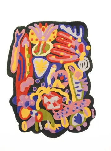 Lay on Grass Art Rug by Vishaka Jindal"Children's minds are highly absorptive," she says. "Purpose and meaning matter to them. Artists are thinkers, researchers, writers, and skilled technicians. When a child encounters something made by an artist, the engagement is different from an object bought online."