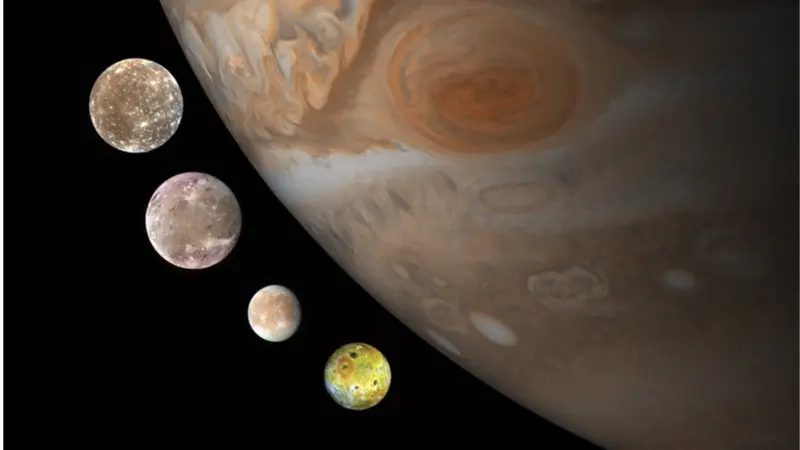 Jupiter and its moons start with the discovery made by Galileo Galileo, in the year 1610, when he used the telescope and discovered four bright points of light-Io, Europa, Ganymede and Callisto, orbiting the planet.