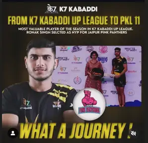| PKL Induction | Inducted into PKL 12 due to outstanding performance in the K7 Kabaddi League Up Edition |