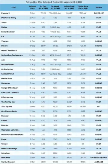 Smitten by the box office bug? Don't miss reading our compilation of box office business done by Tollywood (Telugu) films released in 2024!