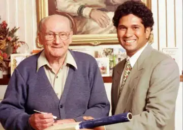 Sachin Tendulkar along with Sir Donald Bradman (credits: Bryan Charlton)"When I watched Sachin play, I was very struck by his technique. I never saw myself play, but I feel this fellow is playing much the way I used to play."