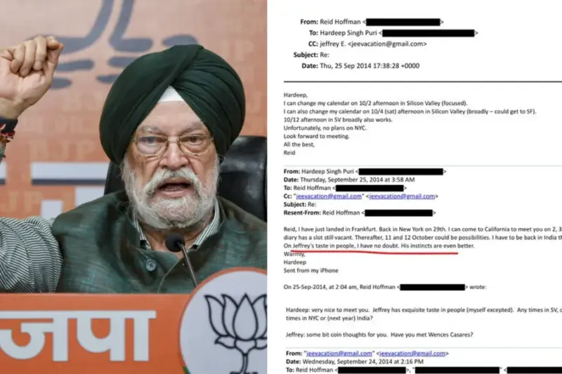 In a post on X, Congress Kerala shared screenshots of the purported email communication, writing, "You know Jeffrey Epstein's 'taste in people' so well. Don't you, @HardeepSPuri?" The party alleged that the emails were part of documents released under the so-called "Epstein Files".
